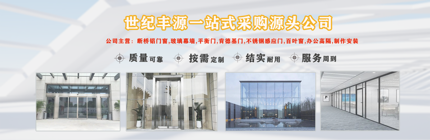 天津世紀(jì)豐源門窗有限公司從事斷橋鋁門窗,玻璃幕墻,平衡門,肯德基門,不銹鋼感應(yīng)門,百葉窗,辦公高隔,制作安裝一站式訂制生產(chǎn)及配套服務(wù)等?! 」咀猿闪⒁詠?lái),始終堅(jiān)持以人才為本、誠(chéng)信立業(yè)的經(jīng)營(yíng)原則,薈萃業(yè)界精英,成熟的技術(shù)、管理方法及企業(yè)經(jīng)驗(yàn)與國(guó)內(nèi)企業(yè)的具體實(shí)際相結(jié)合,為企業(yè)供給各個(gè)方面的解決方案,使企業(yè)在激烈的市場(chǎng)競(jìng)爭(zhēng)中始終堅(jiān)持競(jìng)爭(zhēng)力,實(shí)現(xiàn)企業(yè)快速、穩(wěn)定地發(fā)展?! ≠|(zhì)量好、服務(wù)好、才能信譽(yù)好,公司已在諸多領(lǐng)域取得輝煌成績(jī),愿意成為您可信賴的長(zhǎng)期合作伙伴?! ∽屛覀償y手同行,共同實(shí)現(xiàn)“讓普通老百姓都用得上高端門窗”...